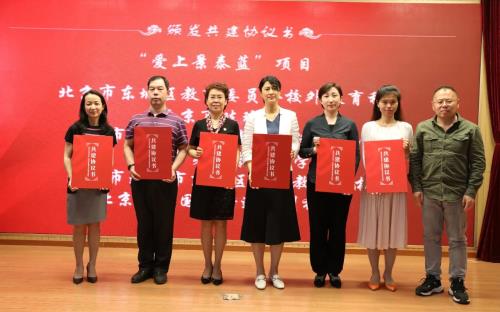 为了进一步贯彻落实中共中央办公厅、国务院办公厅《关于实施中华优秀传统文化传承发展工程的意见》和东城区青少年“文化·传承2030工程”文件精神,爱心教育共同体正式启动“爱心共育课程”:《爱上景泰蓝项目》和《爱上明城墙项目》。东城区非物质文化遗产保护中心主任、北京京城非遗人才创新发展联盟秘书长杨建业主任为首批项目共建单位的领导颁发共建协议书。