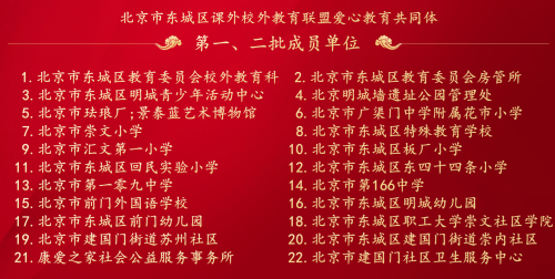 此外来自北京市东城区课外校外教育联盟爱心教育共同体22个成员单位代表共同参加此次会议。