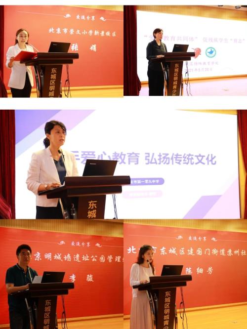 论坛首先对爱心教育共同体“十三五”工作进行总结与回顾。爱心教育共同体第一批成员单位代表:北京市崇文小学新景校区德育主任张娟、北京市第一零九中学德育副校长唐芳、北京市东城区特殊教育学校德育主任余航、北京市东城区建国门街道苏州社区副书记陈细芳、北京明城墙遗址公园管理处文保教育部主任李骏进行了交流分享。